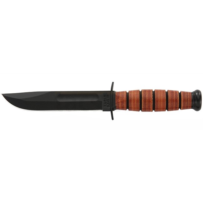 Ka-Bar Short Military Fighting Utility Knife Plain Blade & Leather Sheath - USA
