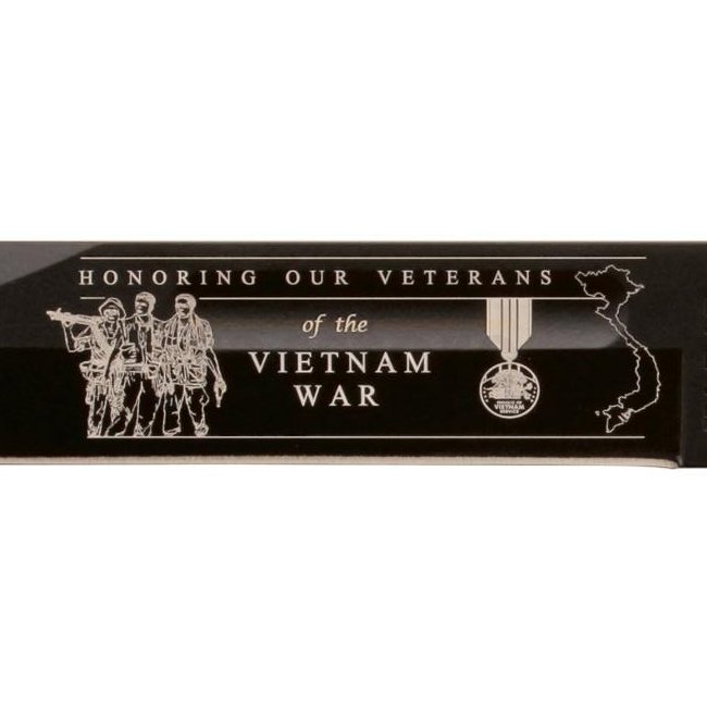 Dieses Messer wurde mit sorgfältig entworfener Klingenkunst lasergraviert, um die Veteranen des Vietnamkriegs zu ehren. Zapfen mit USMC Stempel. Inklusive Lederscheide. Hergestellt in den USA.