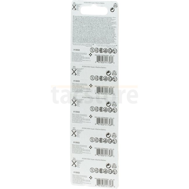 Kodak LR48 / AG5 10 Stück - Set aus 10 LR48 / AG5 Alkali-Batterien von Kodak, entwickelt, um eine langanhaltende Energieversorgung für verschiedene Geräte zu bieten.
