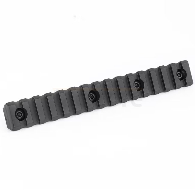 KRUK 15 Slots Picatinny Schiene M-LOK - Schwarz ist ein vielseitiges Schienensystem, das für die Anbringung von Zubehör an Ihrer Schusswaffe konzipiert ist. Mit 15 Schlitzen bietet es ausreichend Platz für individuelle Anpassungen, während die M-LOK-Kompa