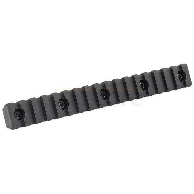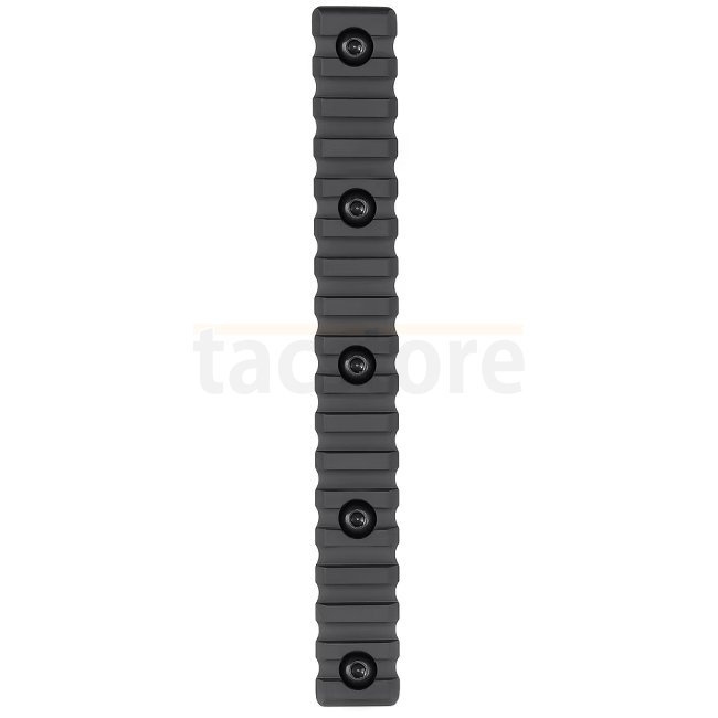KRUK 17 Schlitze Picatinny-Schiene M-LOK in schwarzer Ausführung. Ideal für die Montage verschiedener Zubehörteile. Langlebig, zuverlässig und einfach zu installieren.