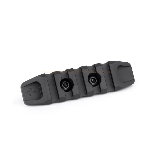 Erhöhen Sie die Vielseitigkeit Ihrer Feuerwaffe mit der KRUK 5-Slot Picatinny-Schiene mit seitlichen Abschrägungen und M-LOK-Kompatibilität in eleganter schwarzer Farbe.