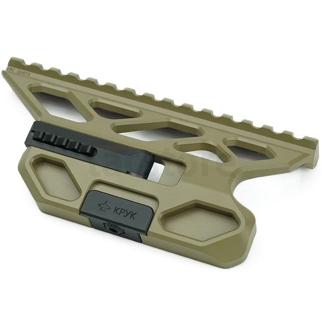 KRUK AK Seitenmontage Schnelllösesystem - Coyote: Schnelllöse-Picatinny-Schienen-Seitenmontage, entworfen für AK / RPK-Plattformen. Schnelle Anbringung und Abnahme mit einstellbarer Klemmungsspannung. Niedriges Profil für die Sichtbarkeit von offenen Visi
