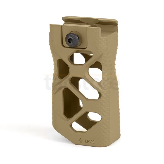 Ein taktischer und ergonomischer KRUK-Vordergriff in Coyote-Farbe, entwickelt für Picatinny-Schienen. Verbessert die Waffenkontrolle und Stabilität für eine erhöhte Schießgenauigkeit.