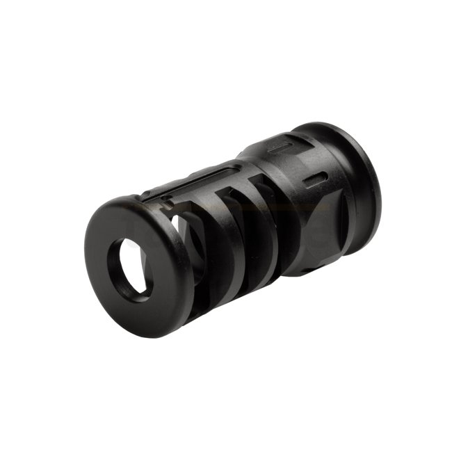 Verbessern Sie die Schussstabilität mit dem Leapers 9mm Mündungsbremse. Hergestellt in den USA aus strapazierfähigem Stahl mit einer schwarzen Nitridbeschichtung. Ausgestattet mit einem 1/2"X28 UNEF-Gewinde und einer Quetschscheibe. Entwickelt mit Gasvert