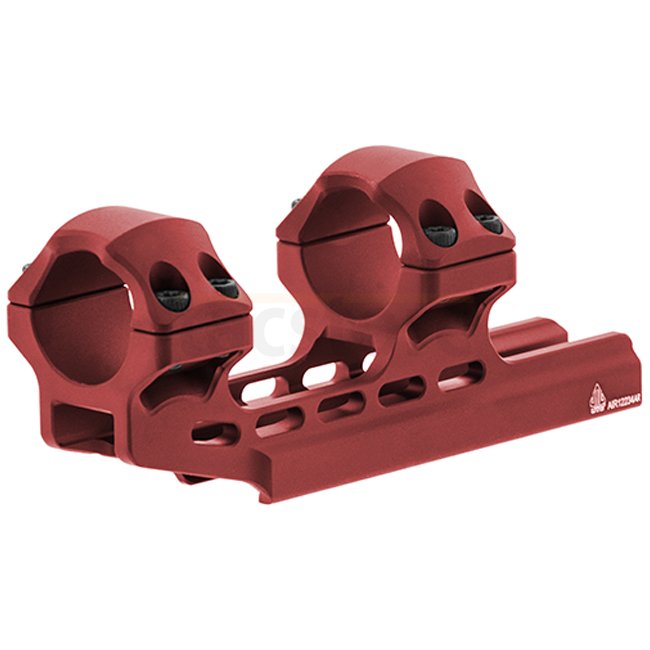 Hochprofil 34mm Offset-Halterung in roter Farbe. 1-Zoll-Rohroptik mit 22 mm Sattelhöhe. Passt zu Zielfernrohren mit einem äußeren Objektivdurchmesser von bis zu 69 mm.