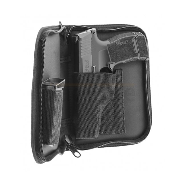 Tragen Sie Ihre Subkompakt-Handfeuerwaffe diskret mit der Leapers Discreet Handgun Case in elegantem Schwarz. Abmessungen: 13 x 18 cm.