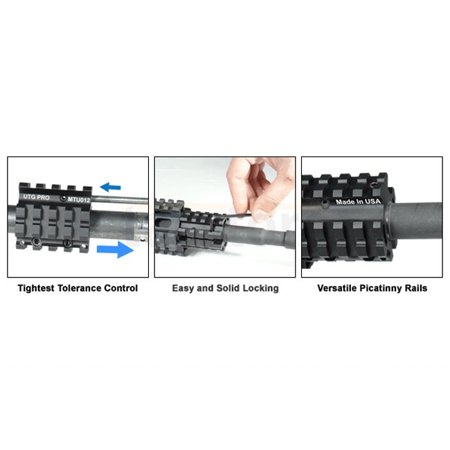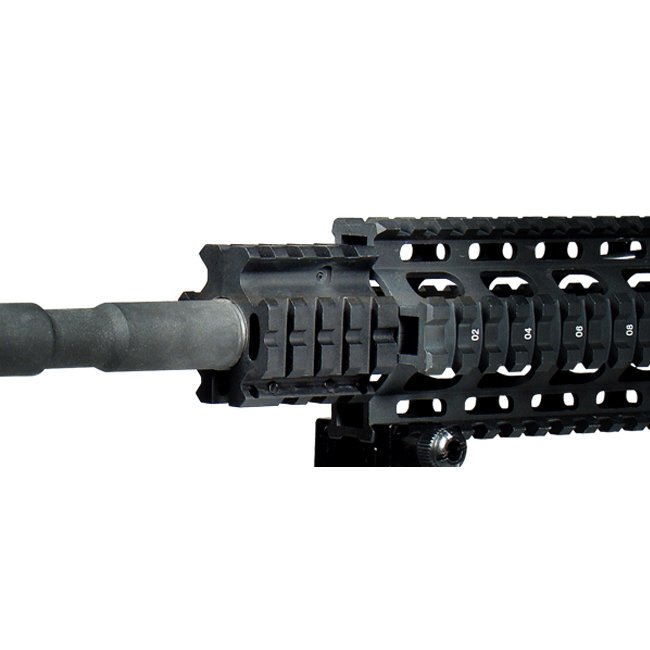 Verbessern Sie Ihr Gewehr mit dem Leapers Quad-Rail Gasblock. Hergestellt aus leichtem Aluminium, misst dieses Zubehör 45,7 x 38,1 x 43,2 mm und wiegt nur 36,9 g.