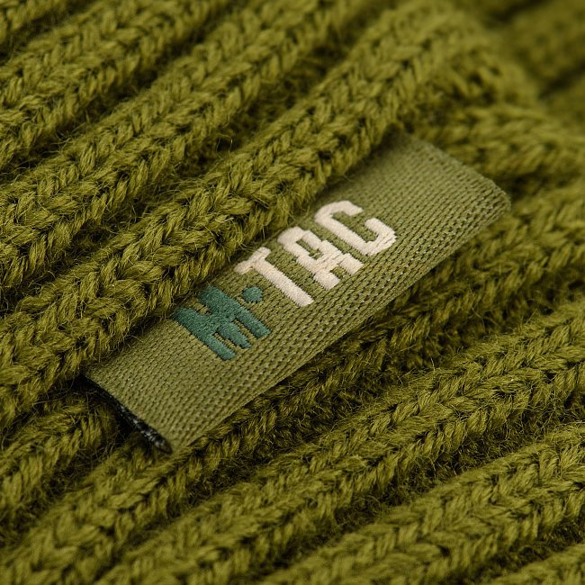 M-Tac Acryl-Wollmütze in Olive, erhältlich in den Größen S/M (55-58 cm) und L/XL (59-62 cm). Hergestellt aus 100% Acrylmaterial.