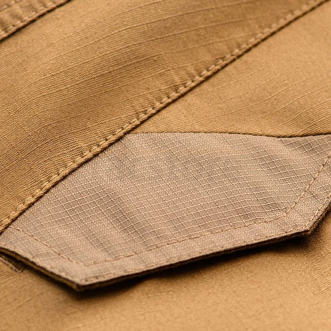 Die Shorts bestehen aus leichtem, glattem Material mit Teflon-Imprägnierung, die vor Wasser und Schmutz schützt. Das Mischgewebe aus Polyester und Baumwolle liegt angenehm auf der Haut, ist farbecht und hat eine hohe Festigkeit. Die Hauptidee bei der Entwicklung dieser Shorts war es, den Bewegungskomfort zu erhalten - die Designer haben diese Aufgabe zu 100% gemeistert - die Shorts vermitteln den Eindruck von Leichtigkeit, schränkt die Bewegung nicht ein und sieht stilvoll und solide aus. Das Modell hat bequeme, breite Taschen mit verstärkten Einsätzen. Die Hose ist so konzipiert, dass sie mit einem Gürtel bis zu einer Breite von 5.5 cm getragen werden kann. Es wurden hochwertiges YKK Zubehör verwendet.