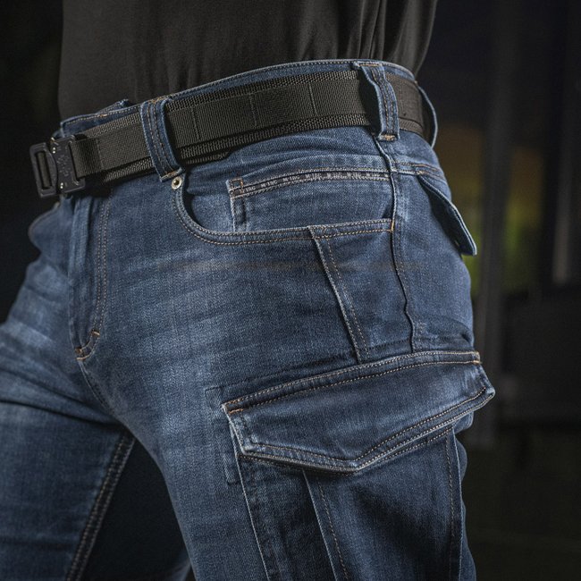 M-Tac Aggressor Jeans - Dunkel Denim - 40/36: Bequeme und vielseitige Jeans, die klassischen Stil harmonisch mit taktischer Funktionalität verbindet. Hergestellt aus strapazierfähigem Denim, mit breiten Taschen, Abnähern an den Knien und Gürtelschlaufen f