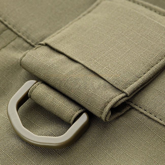 Die Shorts bestehen aus leichtem, glattem Material mit Teflon-Imprägnierung, die vor Wasser und Schmutz schützt. Das Mischgewebe aus Polyester und Baumwolle liegt angenehm auf der Haut, ist farbecht und hat eine hohe Festigkeit. Die Hauptidee bei der Entwicklung dieser Shorts war es, den Bewegungskomfort zu erhalten - die Designer haben diese Aufgabe zu 100% gemeistert - die Shorts vermitteln den Eindruck von Leichtigkeit, schränkt die Bewegung nicht ein und sieht stilvoll und solide aus. Das Modell hat bequeme, breite Taschen mit verstärkten Einsätzen. Die Hose ist so konzipiert, dass sie mit einem Gürtel bis zu einer Breite von 5.5 cm getragen werden kann. Es wurden hochwertiges YKK Zubehör verwendet.