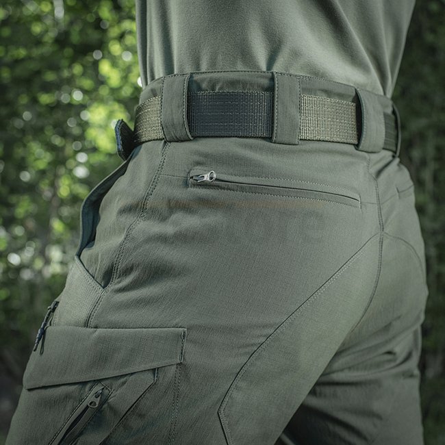 Bequeme, breite Taschen mit verstärkten Einsätzen nehmen das Nötigste auf. Es wurde hochwertiges YKK Zubehör verwendet. Die Hose hat außerdem einen elastischen "Tunnel"-Riemen mit bequemer Passformregulierung und ist so konzipiert, dass sie mit einem bis zu 5.5cm breiten Gürtel getragen werden kann. Auf der Vorderseite befinden sich zwei D-Ringe zum Aufhängen verschiedener Ausrüstung. Der Bund der Hose ist mit einem elastischen Kordelzug und Klettverschluss in der Weite verstellbar.