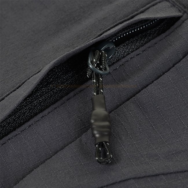 Bequeme, breite Taschen mit verstärkten Einsätzen nehmen das Nötigste auf. Es wurde hochwertiges YKK Zubehör verwendet. Die Hose hat außerdem einen elastischen "Tunnel"-Riemen mit bequemer Passformregulierung und ist so konzipiert, dass sie mit einem bis zu 5.5cm breiten Gürtel getragen werden kann. Auf der Vorderseite befinden sich zwei D-Ringe zum Aufhängen verschiedener Ausrüstung. Der Bund der Hose ist mit einem elastischen Kordelzug und Klettverschluss in der Weite verstellbar.