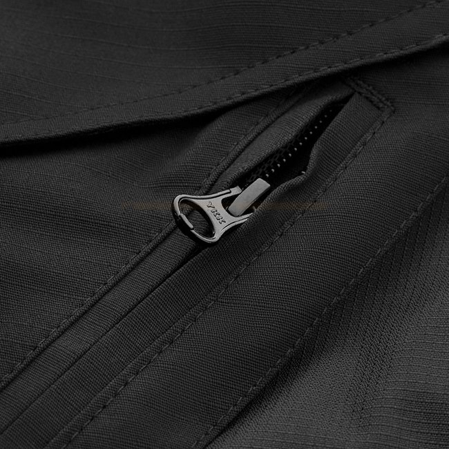 Die Hosen bestehen aus leichtem, glattem Material mit Teflon-Imprägnierung, die vor Wasser und Schmutz schützt. Das Mischgewebe aus Polyester und Baumwolle liegt angenehm auf der Haut, ist farbecht und hat eine hohe Festigkeit. Die Hauptidee bei der Entwicklung dieser Hosen war es, den Bewegungskomfort zu erhalten - die Designer haben diese Aufgabe bestens gemeistert - die Hosen vermitteln den Eindruck von Leichtigkeit, schränken die Bewegung nicht ein und sehen stilvoll und solide aus. Das Modell hat bequeme, breite Taschen mit verstärkten Einsätzen. Die Hose ist so konzipiert, dass sie mit einem Gürtel bis zu einer Breite von 5.5 cm getragen werden kann. Es wurden hochwertiges YKK Zubehör verwendet.