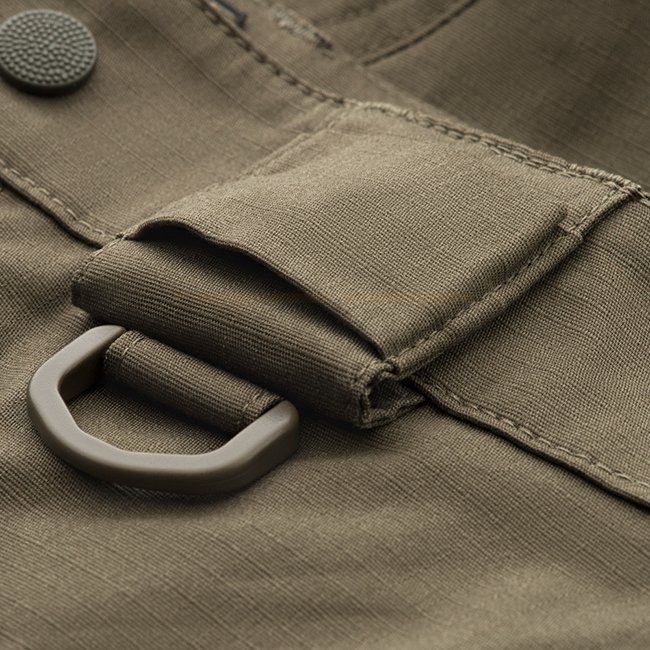 Die Hosen bestehen aus leichtem, glattem Material mit Teflon-Imprägnierung, die vor Wasser und Schmutz schützt. Das Mischgewebe aus Polyester und Baumwolle liegt angenehm auf der Haut, ist farbecht und hat eine hohe Festigkeit. Die Hauptidee bei der Entwicklung dieser Hosen war es, den Bewegungskomfort zu erhalten - die Designer haben diese Aufgabe bestens gemeistert - die Hosen vermitteln den Eindruck von Leichtigkeit, schränken die Bewegung nicht ein und sehen stilvoll und solide aus. Das Modell hat bequeme, breite Taschen mit verstärkten Einsätzen. Die Hose ist so konzipiert, dass sie mit einem Gürtel bis zu einer Breite von 5.5 cm getragen werden kann. Es wurden hochwertiges YKK Zubehör verwendet.