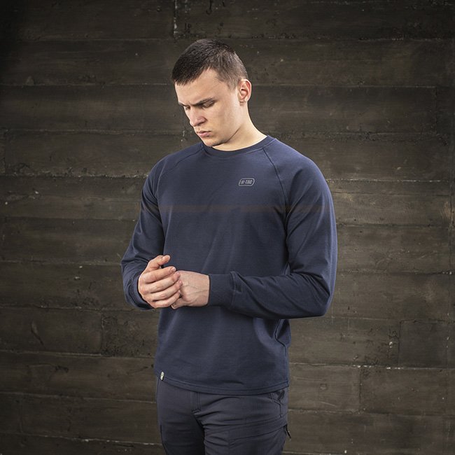 Das M-Tac Athlete Raglan in Dunkel-Marineblau ist ein vielseitiges und minimalistisches Modell, das für den täglichen Gebrauch in allen Jahreszeiten konzipiert wurde. Es hat einen runden Ausschnitt, dehnbare Bündchen und ein Raglan-Design für Bewegungsfre