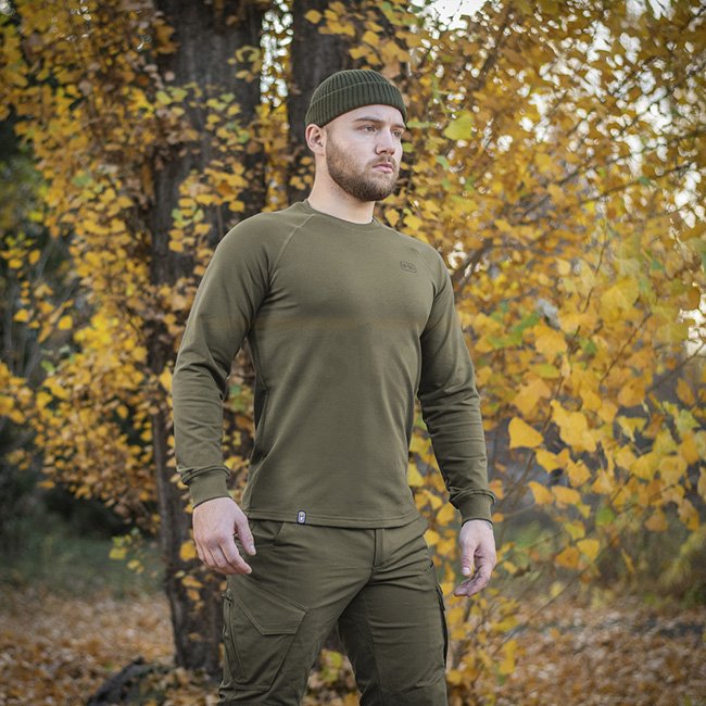 Das vielseitige M-Tac Athlete Raglan in Dunkeloliv ist ein minimalistisches Modell, perfekt für den täglichen Gebrauch in allen Jahreszeiten. Mit einem Rundhalsausschnitt, dehnbaren Bündchen und Raglanärmeln gewährleistet es Bewegungsfreiheit. Material: 9