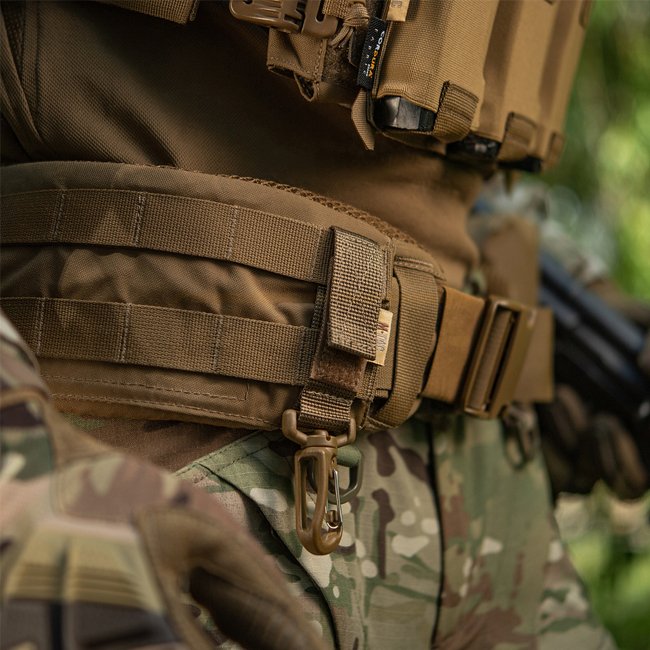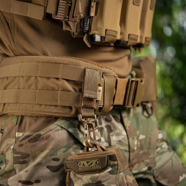 Der M-Tac Attachment Carabiner dient zur Befestigung zusätzlicher Gegenstände an einem Rucksack, Plattenträger, einem Plattenträger, Gürtel oder anderer Ausrüstung mit MOLLE-Schnittstelle.