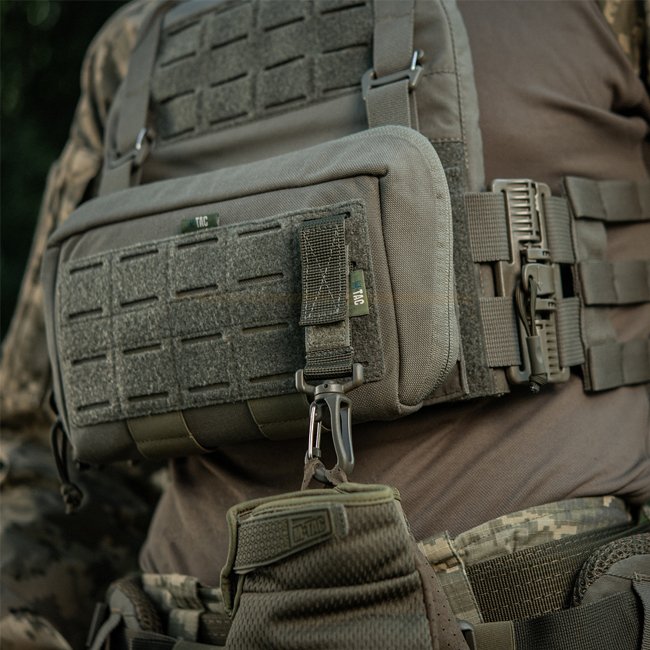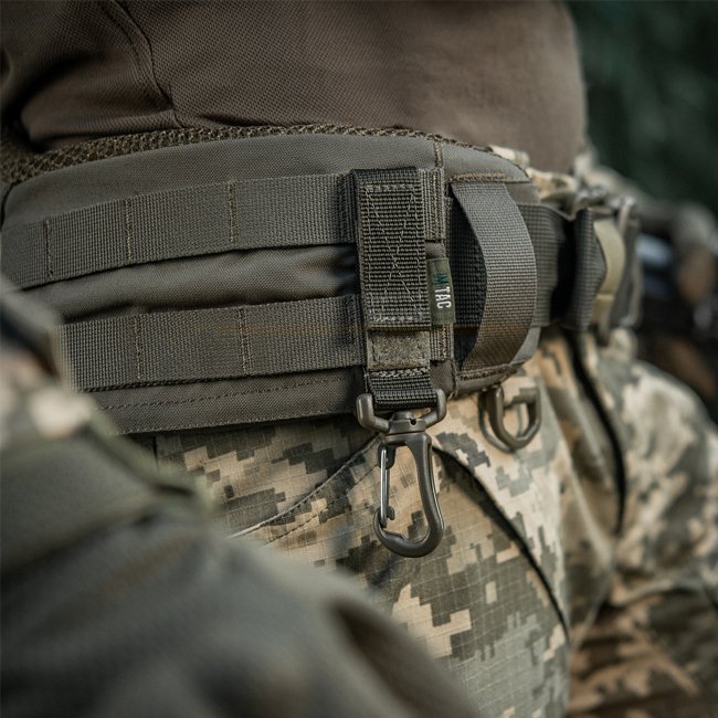 Der M-Tac Attachment Carabiner dient zur Befestigung zusätzlicher Gegenstände an einem Rucksack, Plattenträger, einem Plattenträger, Gürtel oder anderer Ausrüstung mit MOLLE-Schnittstelle.