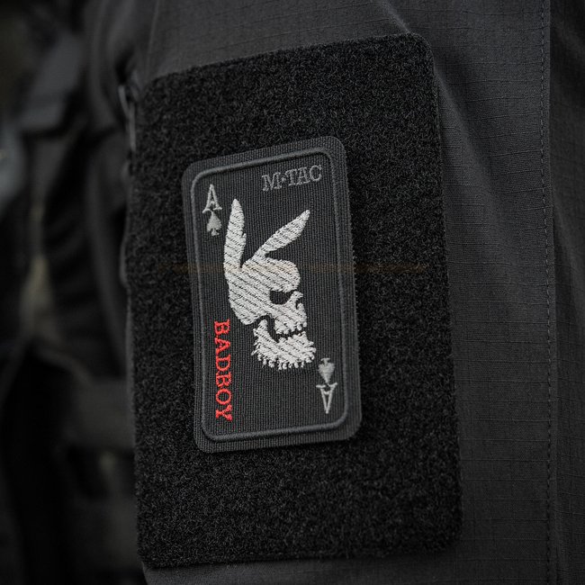M-Tac Bad Boy Stickerei-Patch - Schwarz: Strapazierfähiges Cordura 500D Nylon vorne mit Hakenflächenrückseite. Abmessungen 80x50 mm.