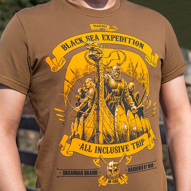M-Tac Black Sea Expedition T-Shirt in Coyotenfarbe und 3XL Größe. Hergestellt aus 93% Baumwolle und 7% Elasthan für Komfort und Haltbarkeit.