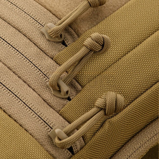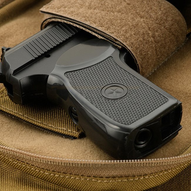 M-Tac Carry Sling Bag Elite - Coyote. Entwickelt für verdecktes Tragen, mit einem universellen Klettverschluss-Holster für Pistolen. Verstellbarer Gürtel und 5 zusätzliche Fächer für persönliche Gegenstände. Ideal für warmes Wetter und zum Tragen von Doku