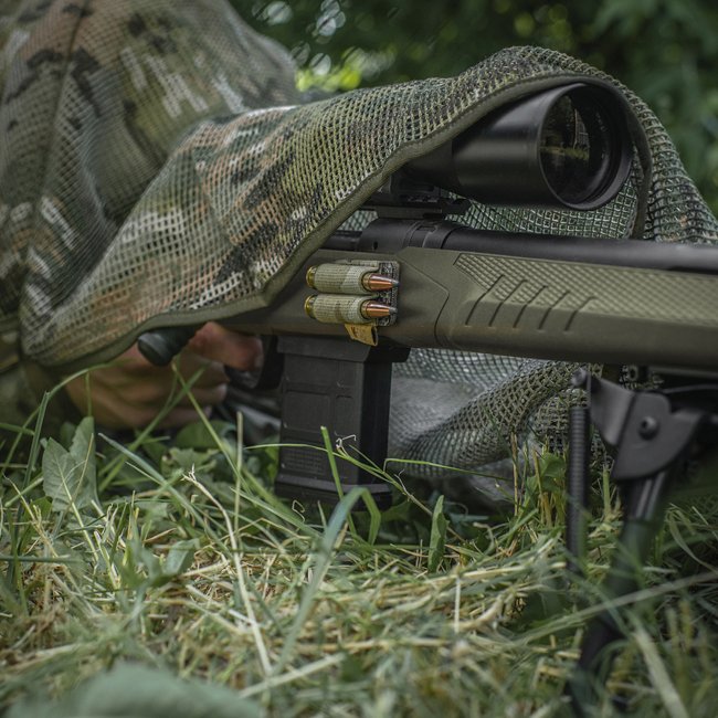 Das Design des Produkts besteht aus einer Carbonplattform mit elastischem Gurtband, die zwei Patronen des Kalibers .308 (7,62 x 51 mm) zuverlässig fixiert. Das Klettband wird mit einer 3M-Polymer-Klebebasis am Schaft oder Gehäuse befestigt. Dieser Patronenhalter wird mit einem Klettverschluss an der Waffe befestigt, der bei Bedarf entfernt werden kann, ohne den Klettverschluss vom Gewehr zu lösen. |