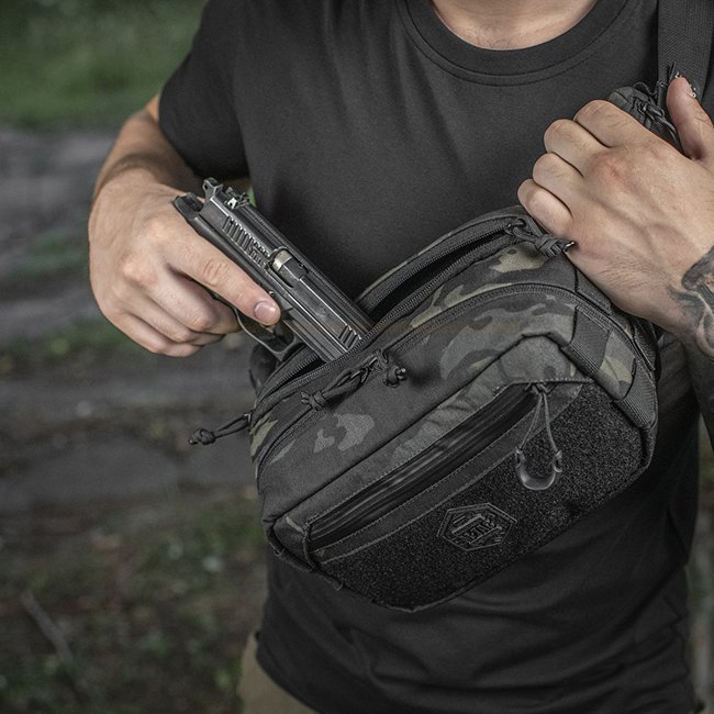 M-Tac City Chest Pack Gen.II Elite Hex - Multicam Black: Übergroßer City-Chest-Pack mit verdeckter Tragetasche, geräumigem Organizer, seitlichen MOLLE-Panels und verstellbarem Riemen. Perfekt für den Transport kleiner Gegenstände, einer leichten Jacke ode