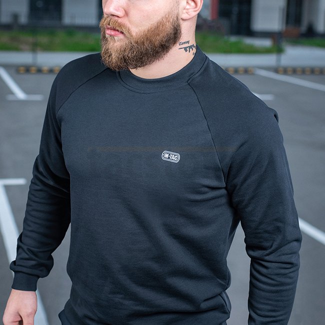M-Tac Baumwoll-Sweatshirt - Dunkelmarineblau - S: Bequemes Alltagssport-Sweatshirt, ideal zum Laufen, Fitness und aktiven Sport. Hergestellt aus 100% Baumwolle, lockerer Stil für einfache Bewegungen, gerippte Bündchen und Bund. Reflektierendes Logo auf de
