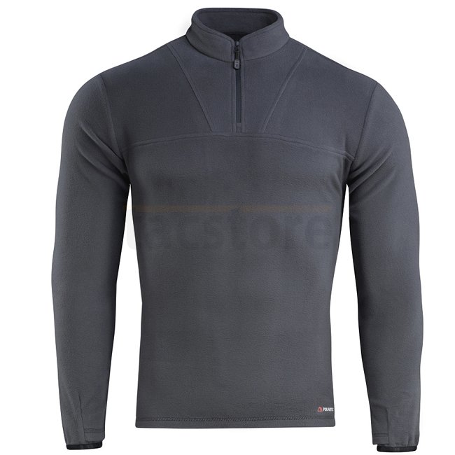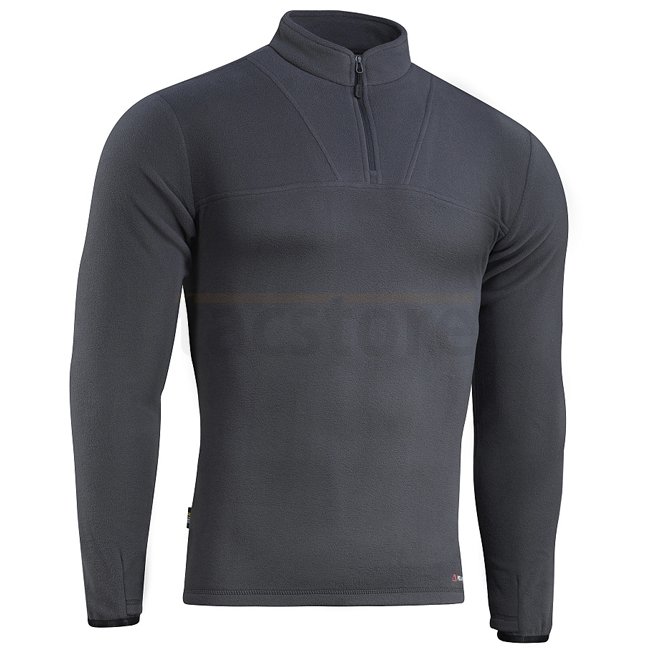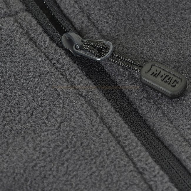 Die M-Tac Delta Polartec Fleecejacke in Dunkelgrau bietet Daumenlöcher in den Ärmeln, um die Handflächen zu wärmen, während die Finger frei bleiben. Dieses Shirt ist weich im Griff, passt gut, behält seine Form nach dem Waschen und trocknet schnell; perfe