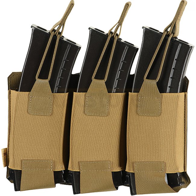 M-Tac Elastische Dreifach-Magazintasche Elite - Coyote, sichert Magazine, ermöglicht schnelles Nachladen.