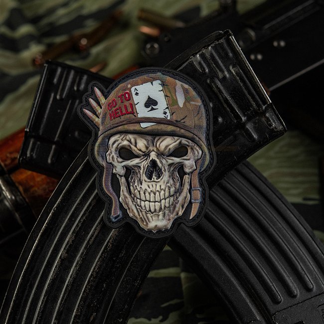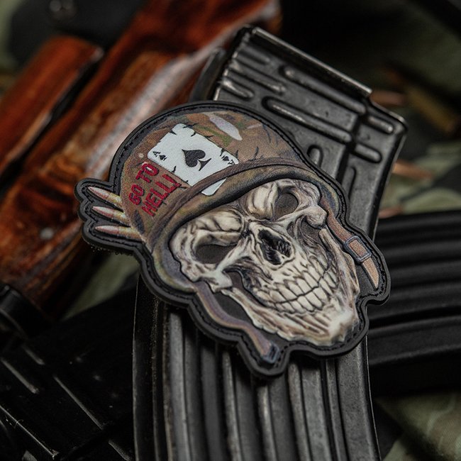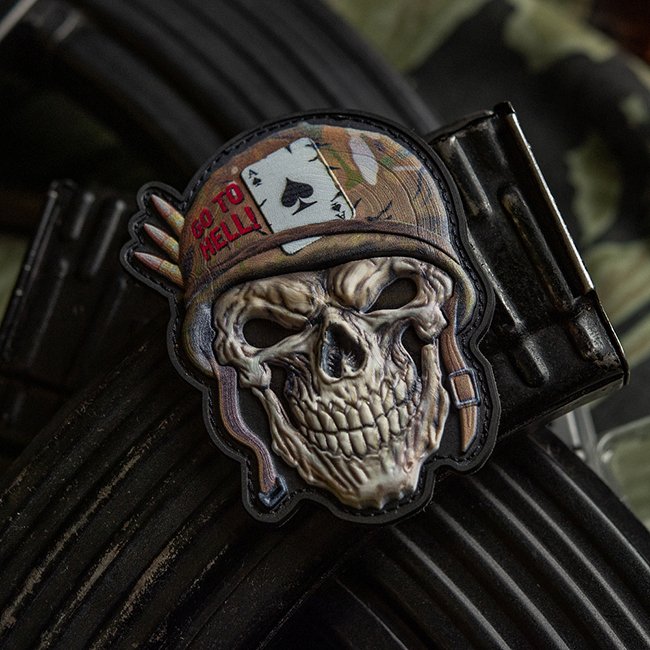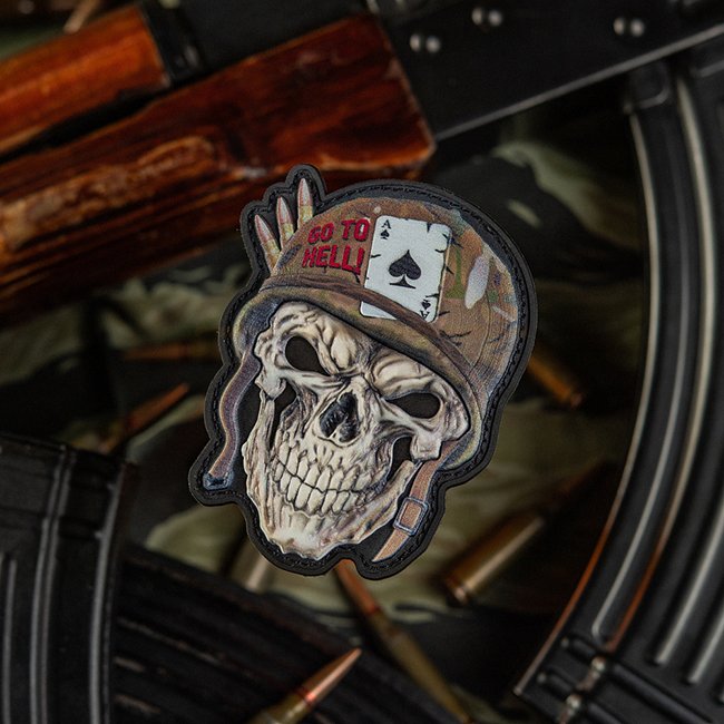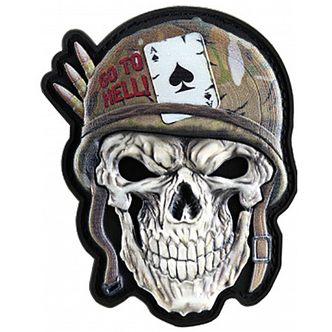 M-Tac Helm Schädel Aufdruck Patch - Coyote. Gummi-Vorderseite mit Hakenfläche. Maße: 85 x 65 mm.