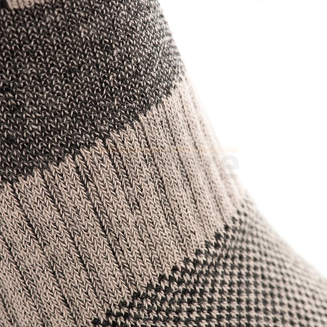 Zu den Konstruktionsmerkmalen der High Socks Mk.2 gehören spezielle Wärme- und Stoßdämpfungszonen in Vorderfuß und Ferse mit Übergang zum Rist, die den Knöchel vor Verstauchungen und mechanischer Belastung schützen. Um die Leistung bei intensivem Gehen zu verbessern, wurde eine seitliche Fußgewölbeklemme hinzugefügt, um zu verhindern, dass die Socke unten knittert. Das breite Bündchen verteilt die Last gleichmäßig, damit die Socke am Schienbein bleibt. Die gesamte Fußfläche ist mit einem internen Frotteegewebe ausgekleidet, das die Belastung gleichmäßig auf den gesamten Fuß verteilt. Trekkingsocken mit texturierten Thermozonen nehmen die meiste Feuchtigkeit auf und leiten die Feuchtigkeit durch die vorhandenen Belüftungskanäle kapillar durch das Obermaterial des Schuhs ab. Außerdem lassen sie sich perfekt mit Membranstiefeln kombinieren, da der Prozess des Feuchtigkeitstransports nach außen noch schneller abläuft.