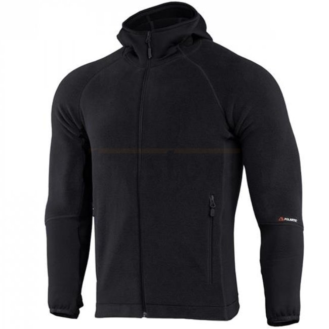 M-Tac Hoodie Polartec Sport - Schwarz - M: Hochwertiges Polartec® Material mit ausgezeichneten wärmeisolierenden Eigenschaften. Speichert keine Feuchtigkeit, transportiert sie vom Körper weg für mehr Komfort. Zweimal so gut wie Schafwolle und Baumwolle in