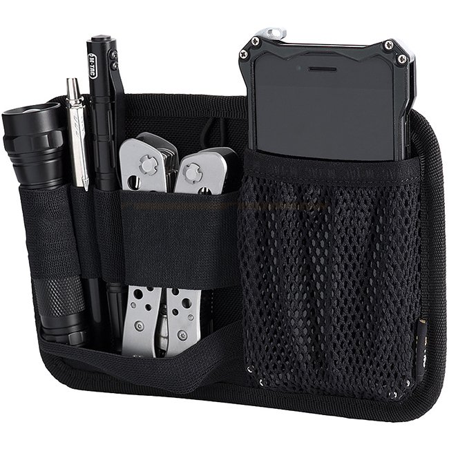 Ein modularer Organizer, der mit einer Klett- oder Veloursoberfläche in einer Tasche oder einem Rucksack befestigt werden kann. Hilft, den Platz in Ihrer Alltagstasche zu organisieren, damit alle wichtigen Dinge griffbereit sind. Elastische Befestigungselemente für taktische Stifte, Taschenlampen, Schlüsselanhänger, Multitools, Messer, Telefone und andere nützliche Geräte sind praktisch, um Ihr EDC-Kit zu tragen. Das Modul ist außerdem mit einem Schlüsselhalter ausgestattet.