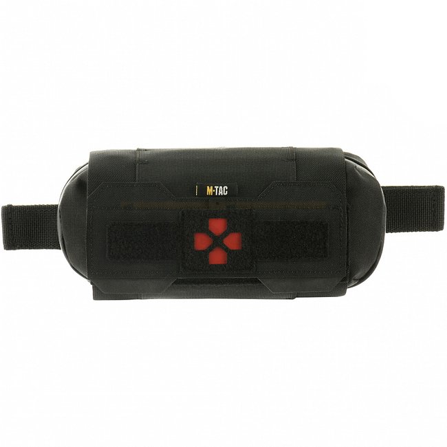 M-Tac Horizontale Medizintasche Elite - Schwarz: Unverzichtbare Erste-Hilfe-Ausrüstung mit Cordura 500D Organizer, AquaGuard Reißverschluss, anbringbarer Basis für MOLLE-Oberflächen und Schlaufenoption für Gürtel.