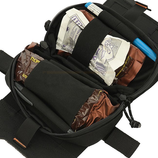 Die Basis des Kits besteht aus Cordura Laminat, geschnitten mit Laser Cut Technologie. Die Kennzeichnung des medizinischen Organisators erfolgt in zwei Farben – rot, traditionell für Erste-Hilfe-Sets, oder schwarz, um es weniger sichtbar zu machen. Wird ohne angezeigten Inhalt geliefert.