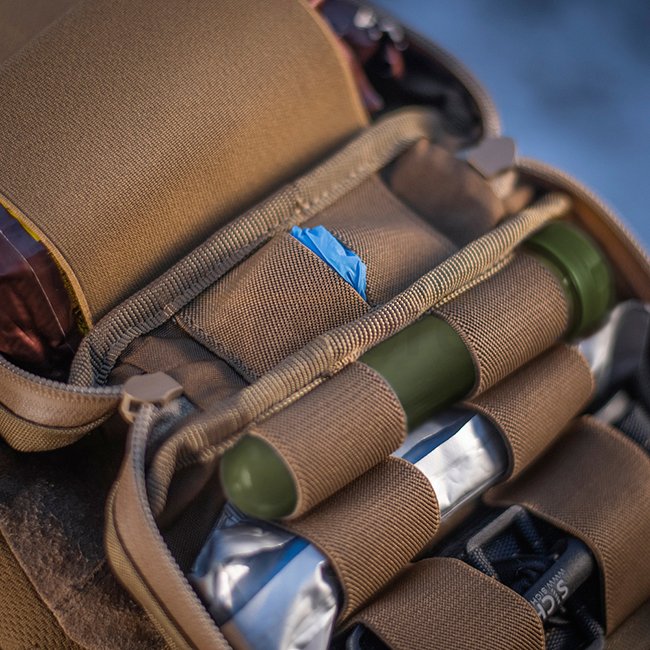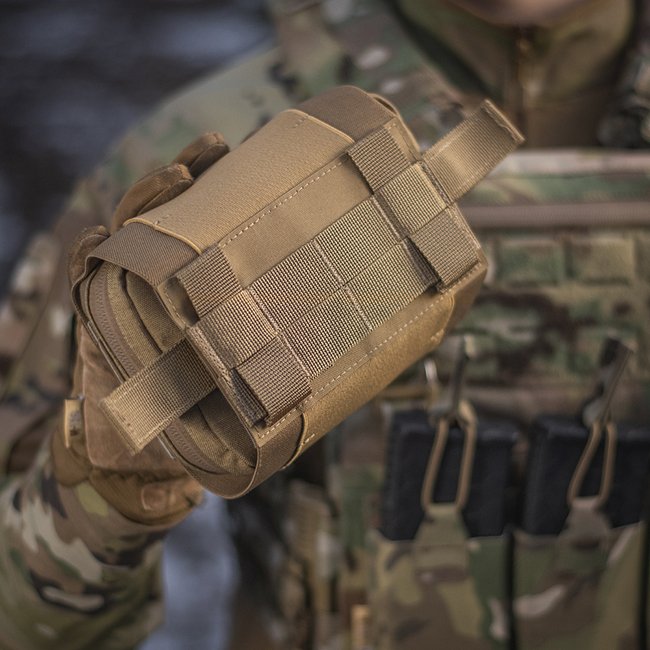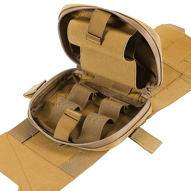 Die M-Tac Horizontal Medizinische Tasche Groß Elite in Coyote-Farbe ist ein vielseitiges Erste-Hilfe-Set, das für schnellen Zugriff und Organisation ausgelegt ist. Merkmale eines Cordura 500D Organizers mit einem wasserdichten YKK AquaGuard Reißverschluss