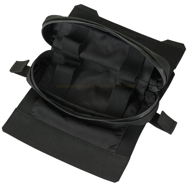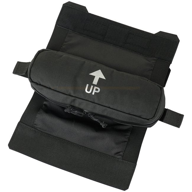 Die medizinische Tasche wird im Fach im hinteren Teil des Plattenträgers installiert. Eine zusätzliche abnehmbare Klettschicht auf der Klappe der Tasche hilft bei der Integration in jeden Plattenträger, bei dem der untere Teil des Plattenfachs mit Klettverschluss geschlossen wird, unabhängig davon, ob der Haken- oder Schlaufenteil benötigt wird.