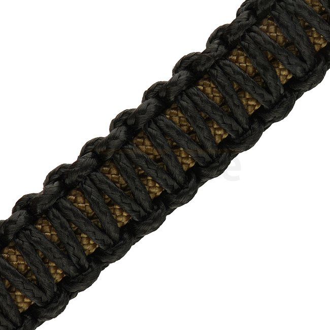 Ein geflochtenes Paracord-Lanyard für leichten Zugang zum Taschenmesser mit einem stilvollen keltischen Design in Coyote-Farbe.