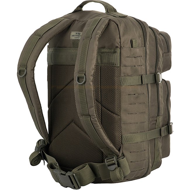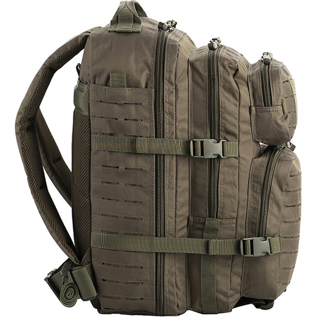 M-Tac Großer Sturm Rucksack Laser Cut - Olive: Leichter, bequemer Rucksack für die Stadt und kleine Wanderungen. Ausgestattet mit MOLLE-System, 2 Hauptfächern, 2 vorderen Reißverschlusstaschen. Verstellbare gepolsterte Schultergurte. Material: 100% Poly