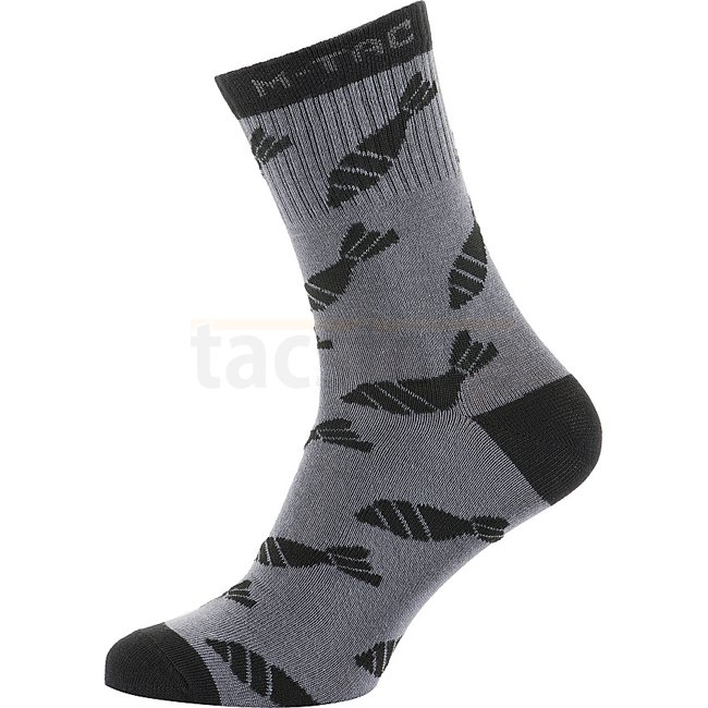M-Tac Leichte Socken Mörserbomben Mk.3 - Dunkelgrau - 43-46: Leichte, atmungsaktive Socken mit optimaler Thermoregulation. Enges elastisches Band verhindert Verdrehen oder Rutschen. Originalmuster und anatomische Form für Komfort. Perfekt belüftet für hei