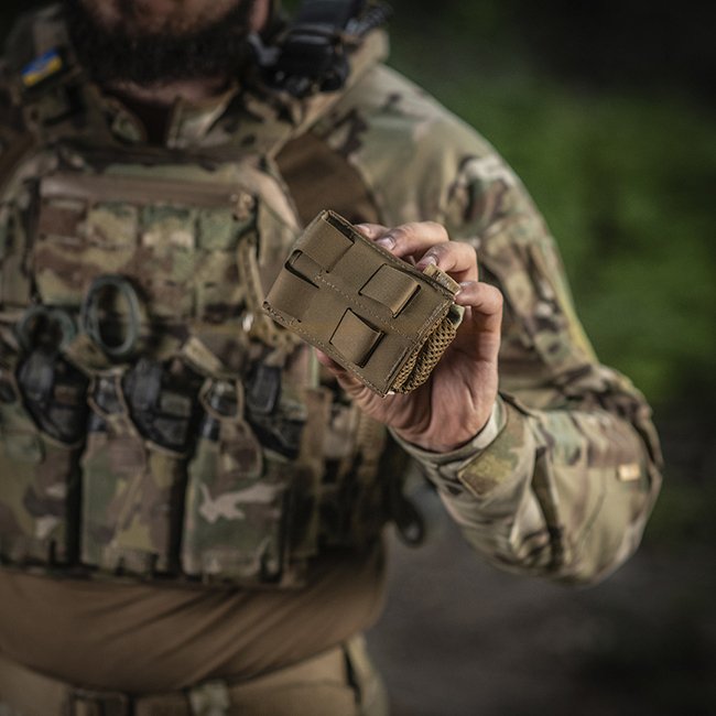 Die Tasche ist für den blinden Austausch von Magazinen in Situationen hoher Belastung vorgesehen. Das spezielle Design verhindert, dass Magazine und andere Ausrüstung aus der Tasche fallen. Der Hals der Tasche ist mit einem Schnellverschlusssystem ausgestattet, mit dem Sie die Tasche bei Bedarf schnell und fest verschließen können.