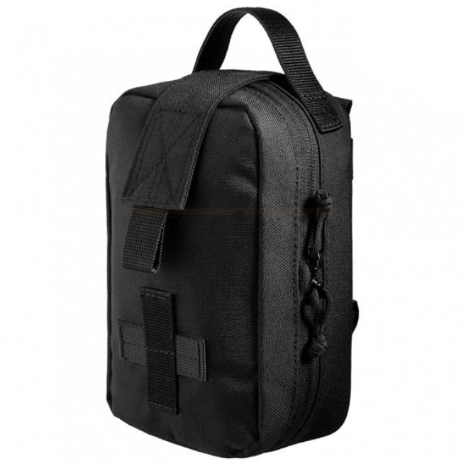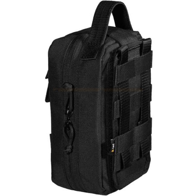 Kompakte M-Tac Medizintasche aus strapazierfähigem Cordura 1000D. Mit nur 200g Gewicht misst sie 21x14x9 cm. Ideal für medizinische Notwendigkeiten unterwegs. Elegantes schwarzes Design.