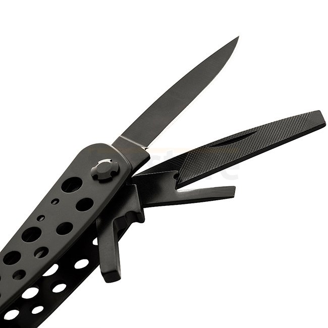 Hochwertiges, zuverlässiges und relativ preiswertes Multitool. Das Set enthält die nötigsten Werkzeuge für den täglichen Gebrauch: Zange und Drahtschneider, Schraubendreher, Sägen, Dosen- und Flaschenöffner und sogar eine Feile, alles in einem kompakten, praktischen Set, das geschlossen praktisch keinen Platz einnimmt.