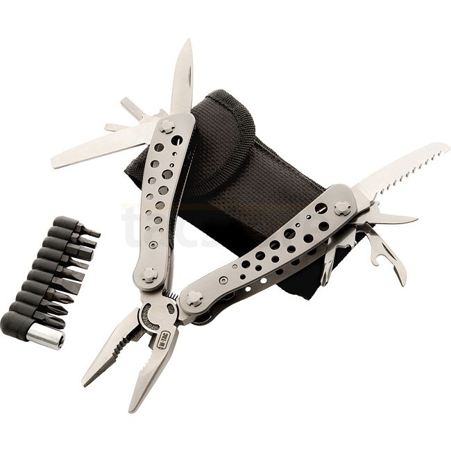 Bleiben Sie auf alle Situationen vorbereitet mit dem M-Tac Multitool in Grau. Ideal für den täglichen Gebrauch, bietet dieses hochwertige Multitool Zangen, Schraubendreher, Sägen, Dosen- und Flaschenöffner und vieles mehr in einem kompakten Set. Hergestel