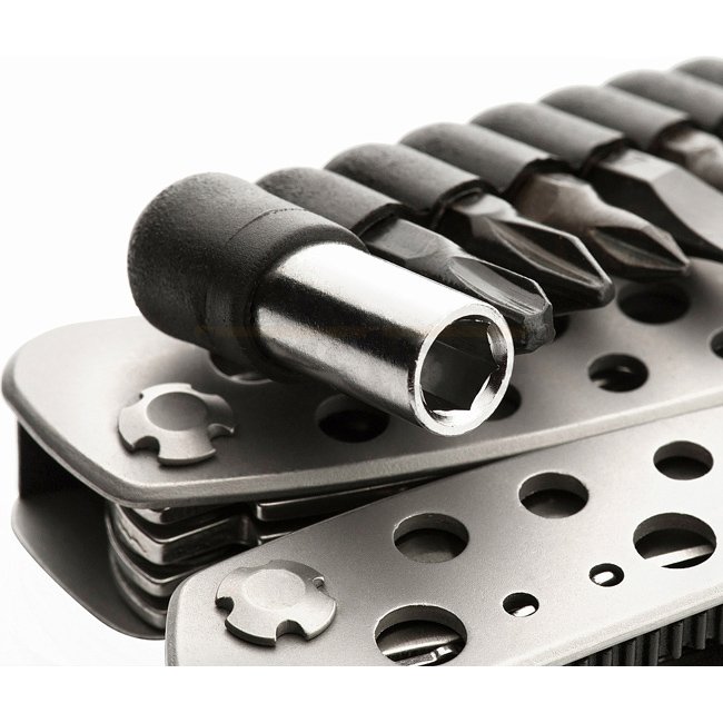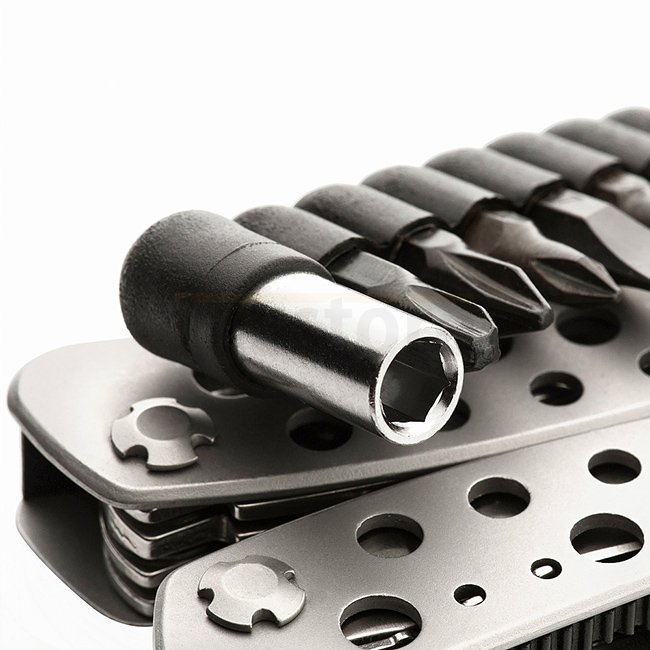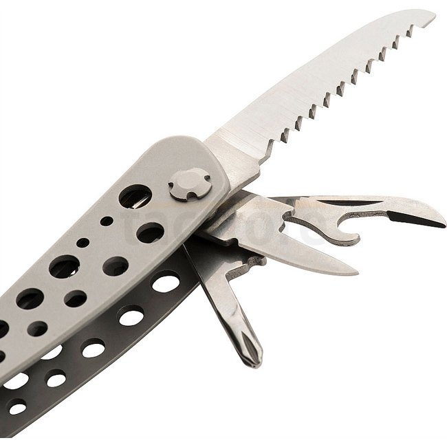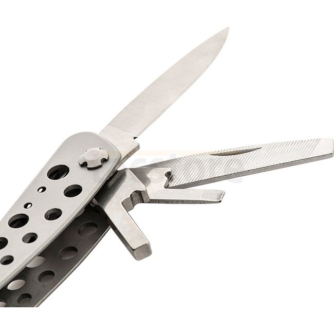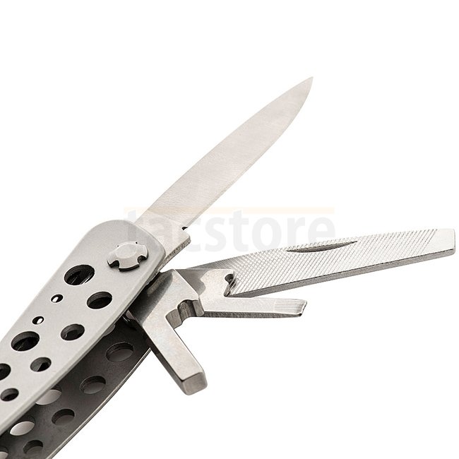 Hochwertiges, zuverlässiges und relativ preiswertes Multitool. Das Set enthält die nötigsten Werkzeuge für den täglichen Gebrauch: Zange und Drahtschneider, Schraubendreher, Sägen, Dosen- und Flaschenöffner und sogar eine Feile, alles in einem kompakten, praktischen Set, das geschlossen praktisch keinen Platz einnimmt.