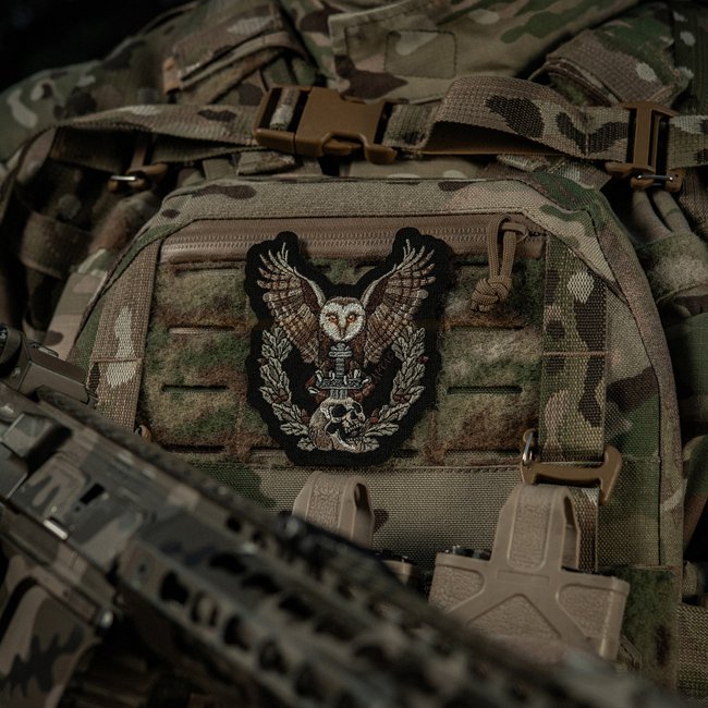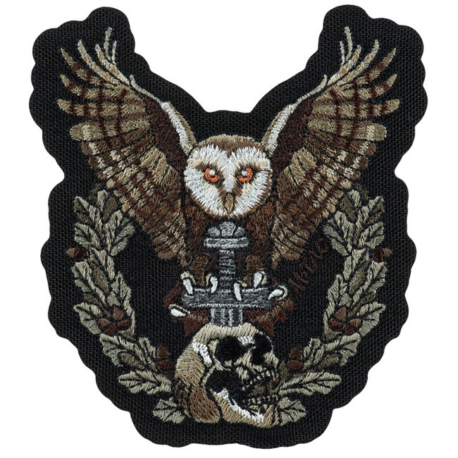 M-Tac Eulenstickerei-Patch - Schwarz: hochwertige Cordura 500D Vorderseite mit Hakenfläche Rückseite. Abmessungen 85x95mm.