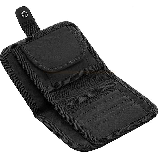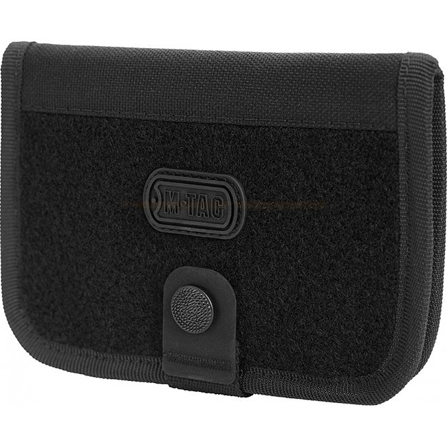 Geldbörse mit einem Knopf-Verschluss. Hergestellt aus Cordura 1000D Material. Die Vorderseite des Portemonnaies ist mit einem Klett zum Anbringen von Patches und Identifikatoren ausgestattet. Im Inneren befindet sich ein Fach für Papierscheine und ein Fach für Kleingeld sowie Fächer für Karten.
